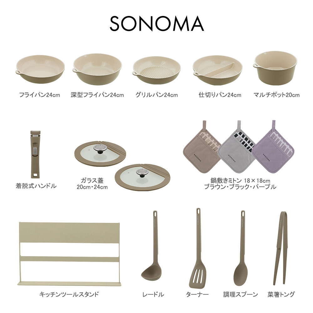 フライパン 24cm IH ガス火対応 セラミック SONOMA グレージュ LV-0361