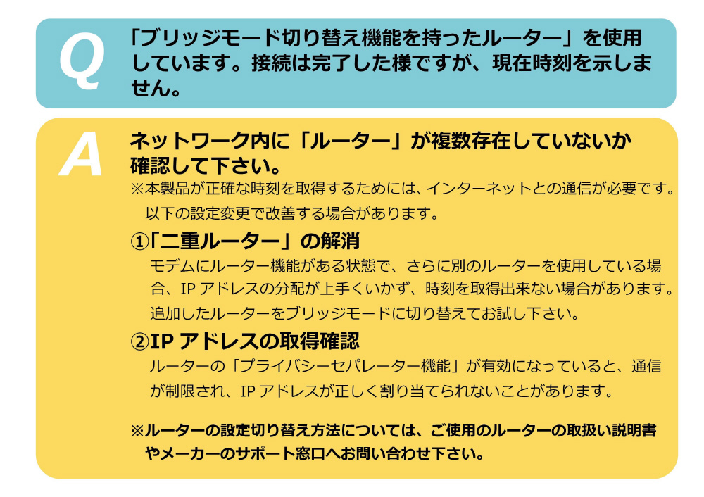 ・本製品はインフラが整った現代社会ならではのルーター/スマホなど「デジタルデバイスを介したインターネットの時刻(NTP)を取得」して時刻を同期させる時計です。