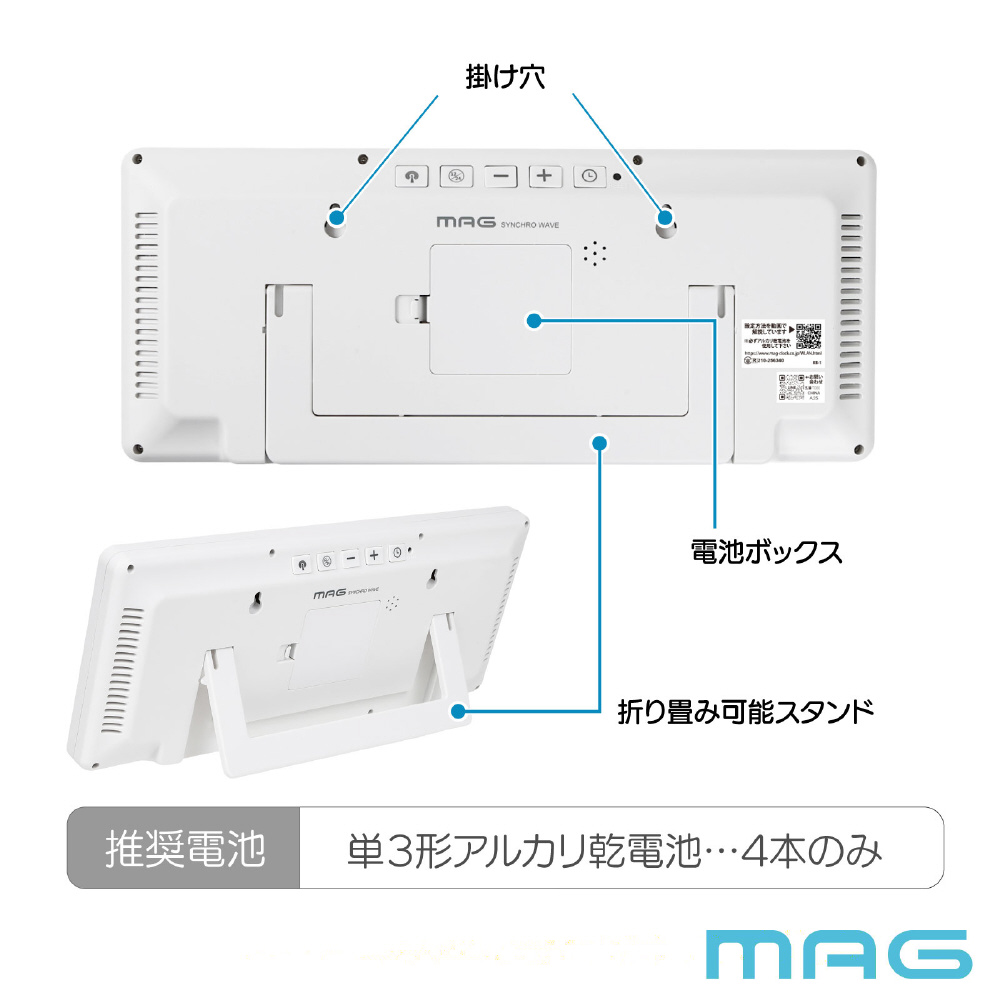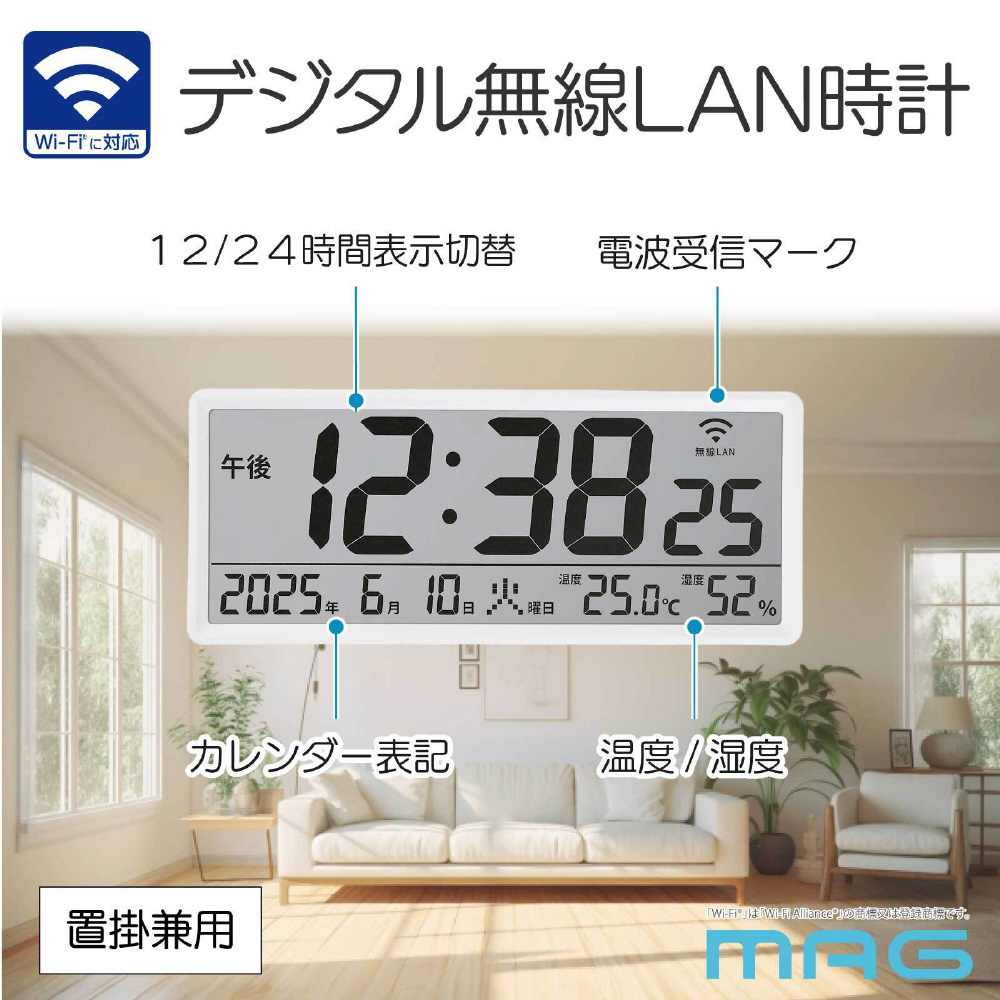 無線LAN(Wi-Fi)でネットと接続し時刻を同期できる大型サイズの掛時計 デジタル W821WHZ