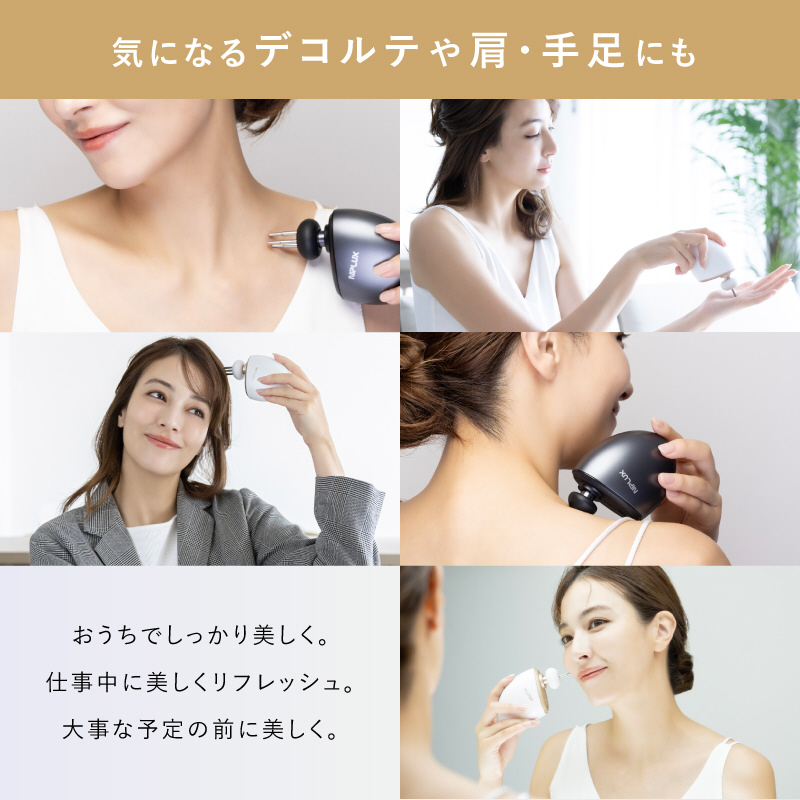 顔や身体に使えるドーム型アタッチメント。平型アタッチメントも。