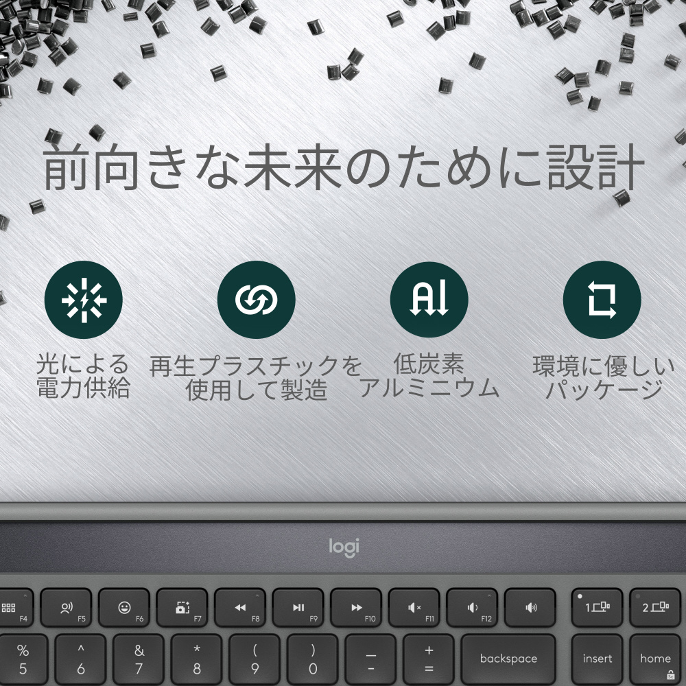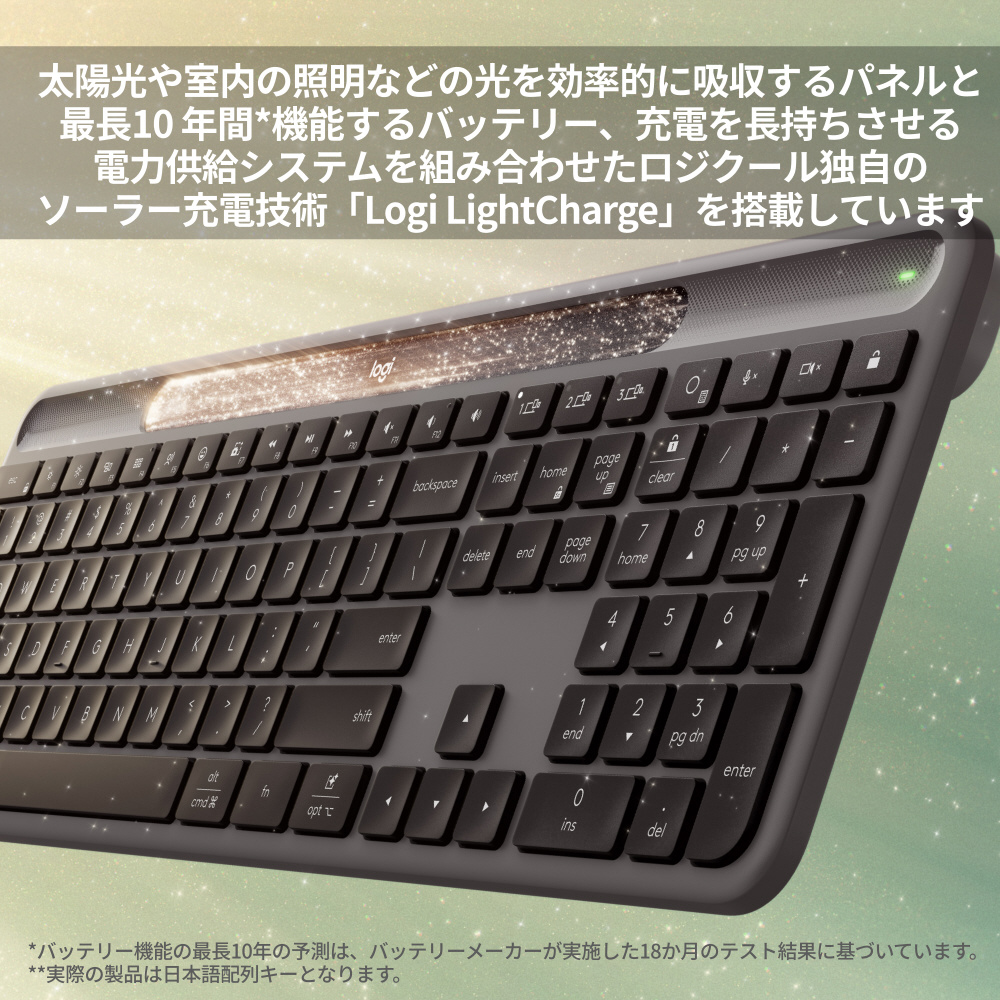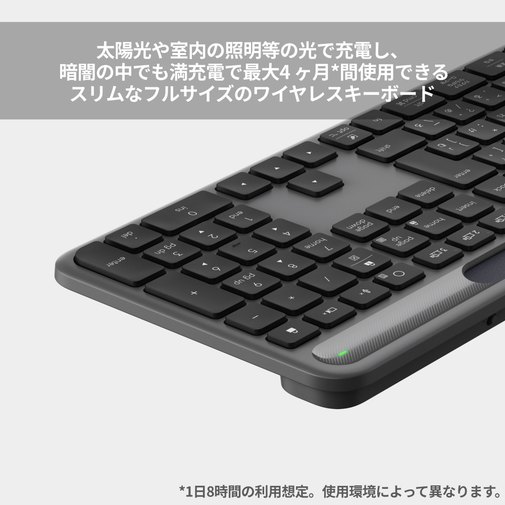 ロジクール独自のソーラー充電(自然光源、及び人工光源による充電)新技術「Logi LightCharge」を搭載したワイヤレスキーボード