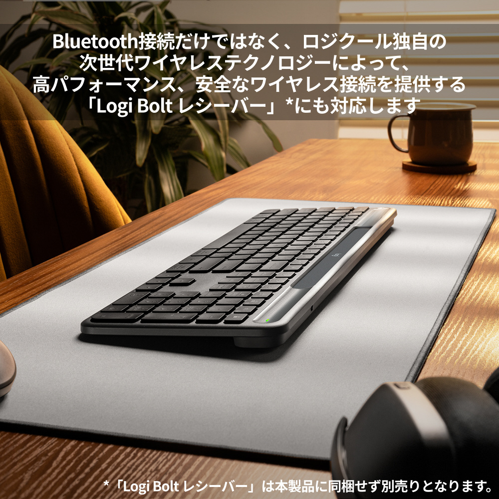 ■Bluetoothで対応デバイスと簡単に接続、別売りの「Logi Boltレシーバー」にも対応