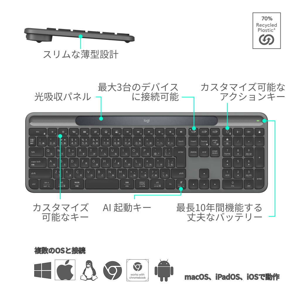 キーボード 「Signature Slim Solar+ K980」ソーラー充電(Chrome/Android/iPadOS/iOS/Mac/Windows11対応) グラファイト K980GR [ワイヤレス /Bluetooth]