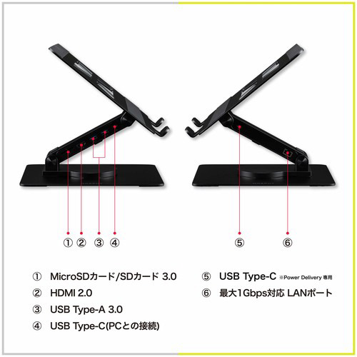 ノートPCの高さや角度を柔軟に調整できるスタンドとドッキングステーションが1台に