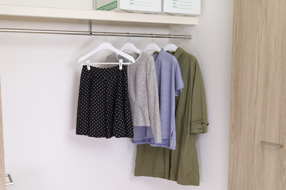 強力クリップ付でパンツ、スカートもまとめて収納できます。