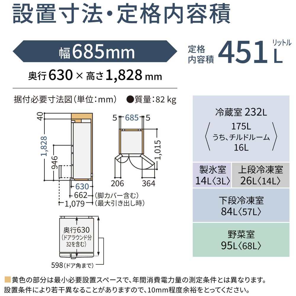 冷蔵庫 FVFタイプ ハーモニーホワイト NR-FVF45S3-W [幅68.5cm /451L /6ドア /観音開きタイプ /2025年]
