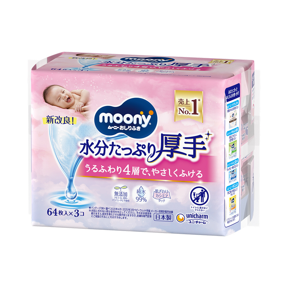 moony(ムーニー)おしりふき水分たっぷり厚手詰替 64枚×3