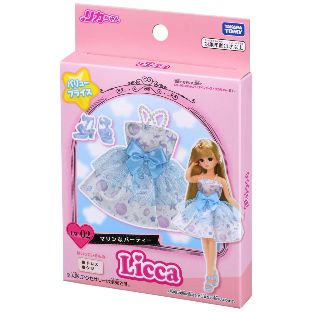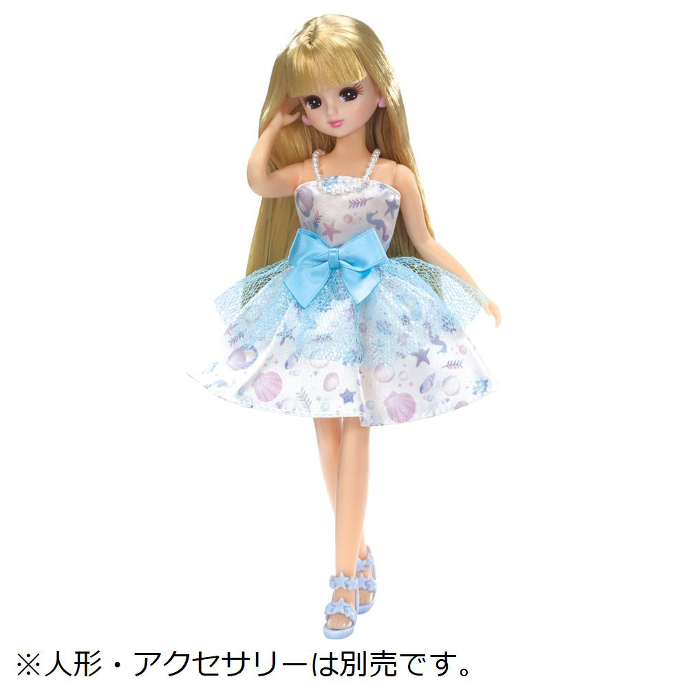 マリンデザインとキラキラレースがかわいいリカちゃんのワンピースです。