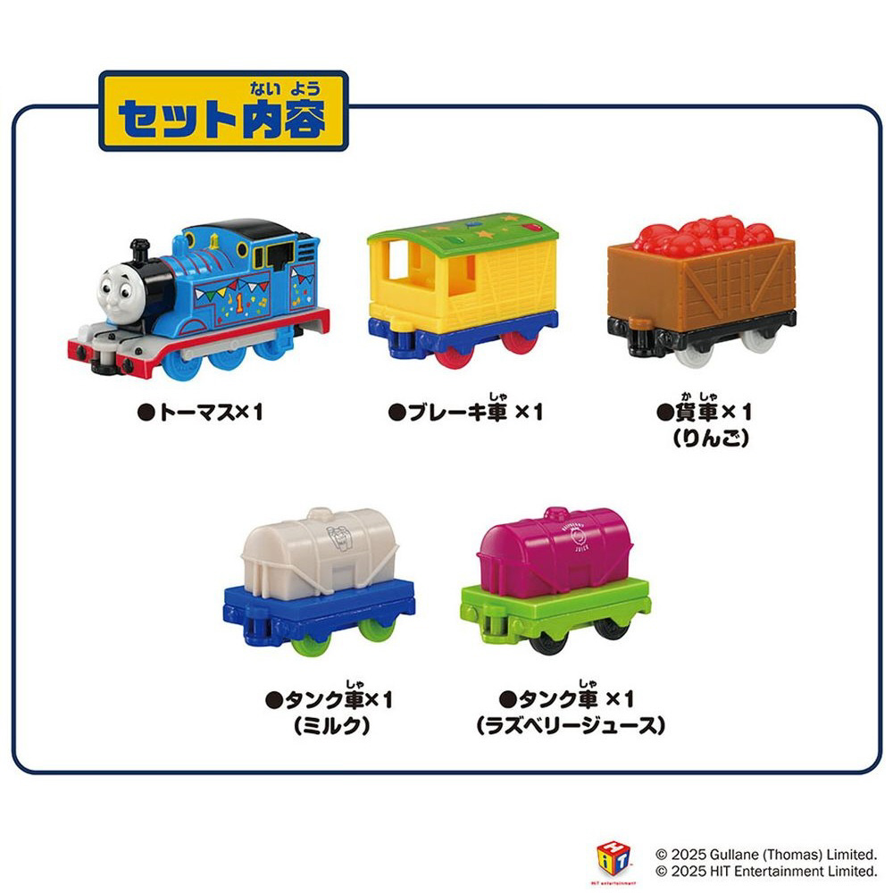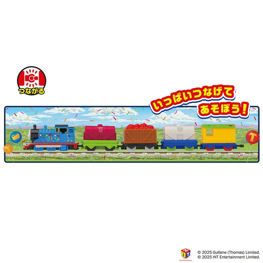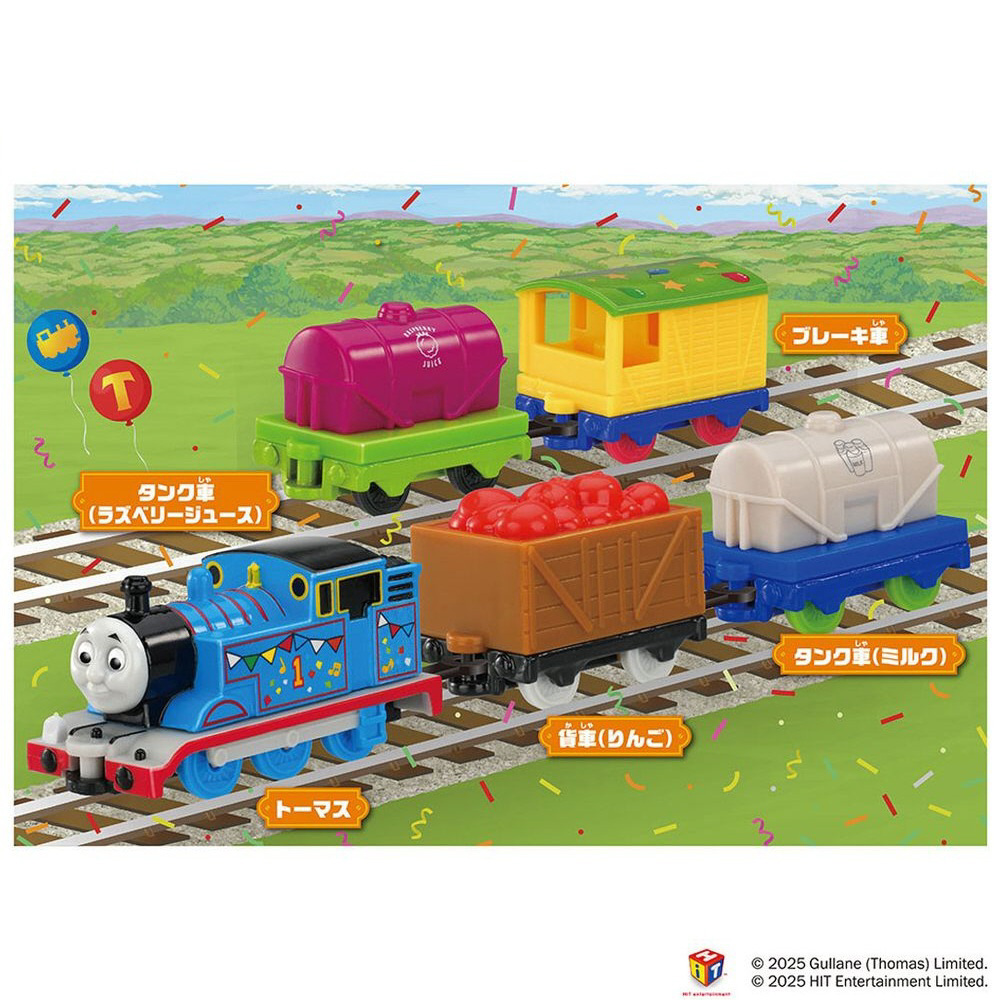 オリジナルデザインのパーティー仕様のトーマスとさまざまな貨車がはいったセットが登場!