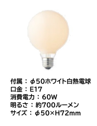■電球:φ50ホワイト白熱電球(E17/60W)×4灯付