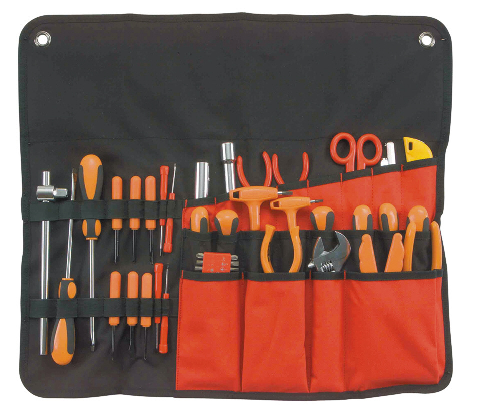 ●ハンドル付きで、持ち運びに便利なツールロール。