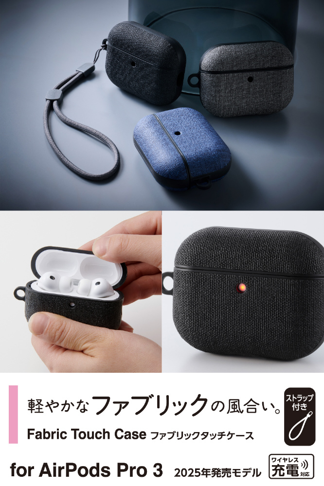 MagSafe充電に対応し、軽やかなファブリックの風合いで、装いに溶け込む上質なAirPods Pro 3用ファブリックタッチケースです。