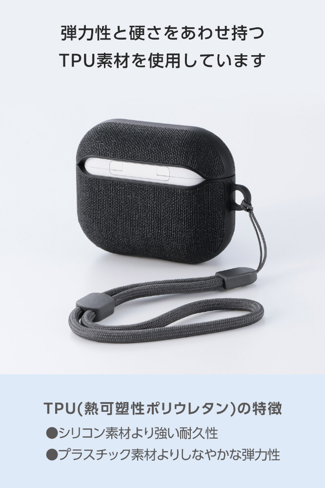 MagSafe充電にも対応!持ち運びしやすいストラップが付いた、軽やかで装いに溶け込む上質なAirPods Pro 3用ファブリックタッチケースです。