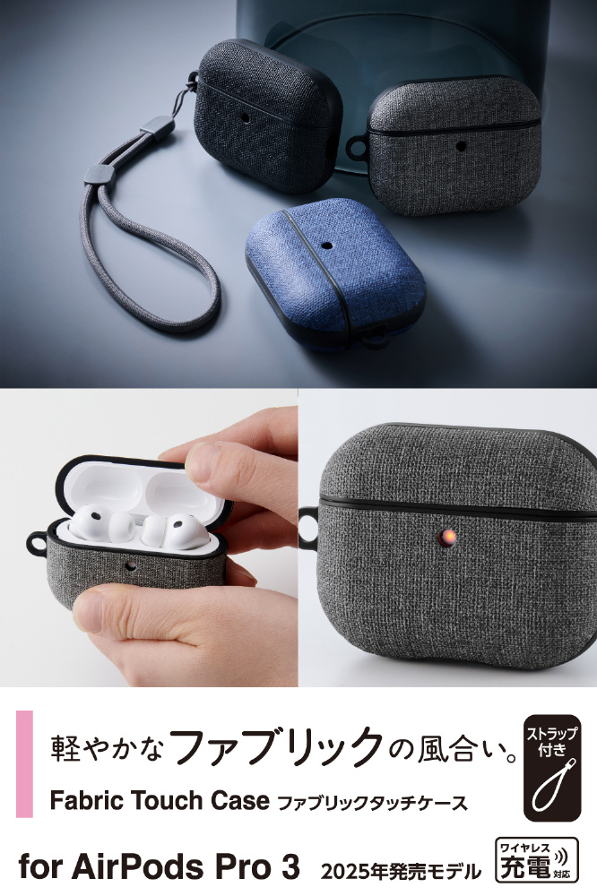 MagSafe充電に対応し、軽やかなファブリックの風合いで、装いに溶け込む上質なAirPods Pro 3用ファブリックタッチケースです。