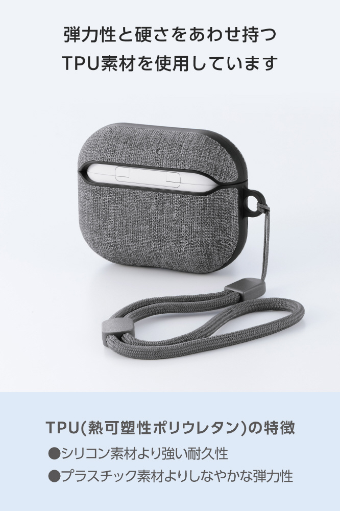 MagSafe充電にも対応!持ち運びしやすいストラップが付いた、軽やかで装いに溶け込む上質なAirPods Pro 3用ファブリックタッチケースです。
