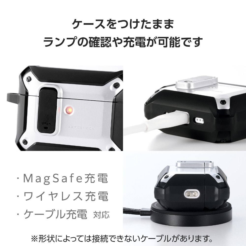 落下時に本体の飛び出しを防ぐロック機能付き!3つの衝撃吸収構造で衝撃から守るAirPods Pro 3用ZEROSHOCK Lockハイブリッドケースです。
