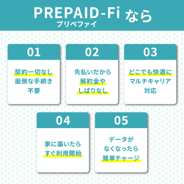 PREPAID-Fiは「契約不要」「月額不要」「返却不要」の新しいモバイルルーターです。