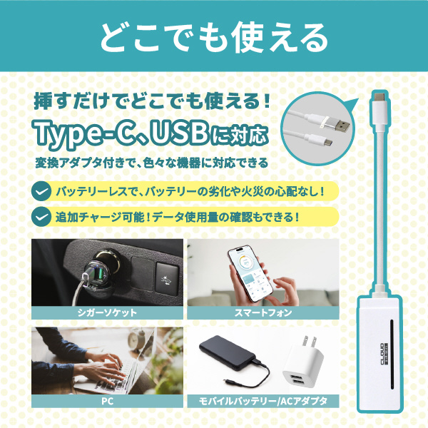 PREPAID-Fiは設定不要で、スマートフォンやPCに差すだけで利用できます。