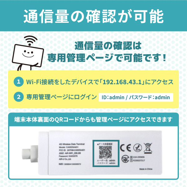 契約不要で有効期限データ100GB・有効期限365日間が入っており、電源をいれたらすぐに通信の利用が開始できます。