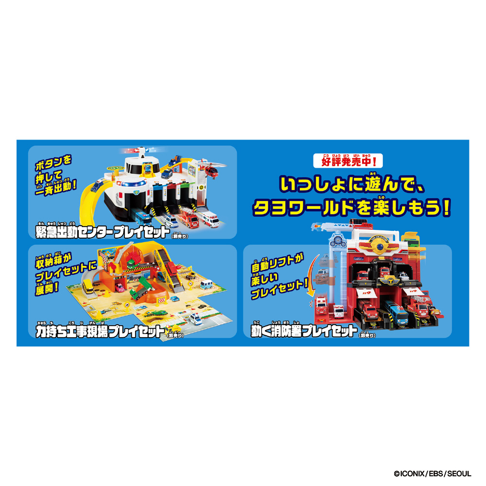 『ちびっこバス タヨ』から、建設現場で活躍するミニカーが4台入った「ちびっこ力持ち建機大集合セット品」が登場!ころ走行で車遊びが楽しめるだけでなく、プレイセットと連動して遊ぶことができます。一部のミニカーは可動するギミック付き!