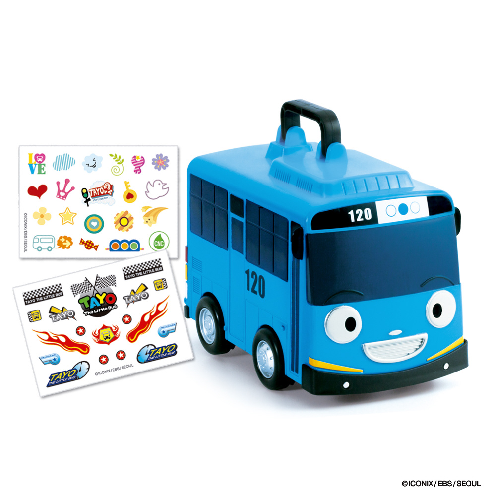 大人気ちびっこバス タヨシリーズより「ミニカーキャリアー」が登場!250mmのビックサイズでころ走行が可能!最大12台のミニカーを収納できます。ステッカーシートが2枚付属。