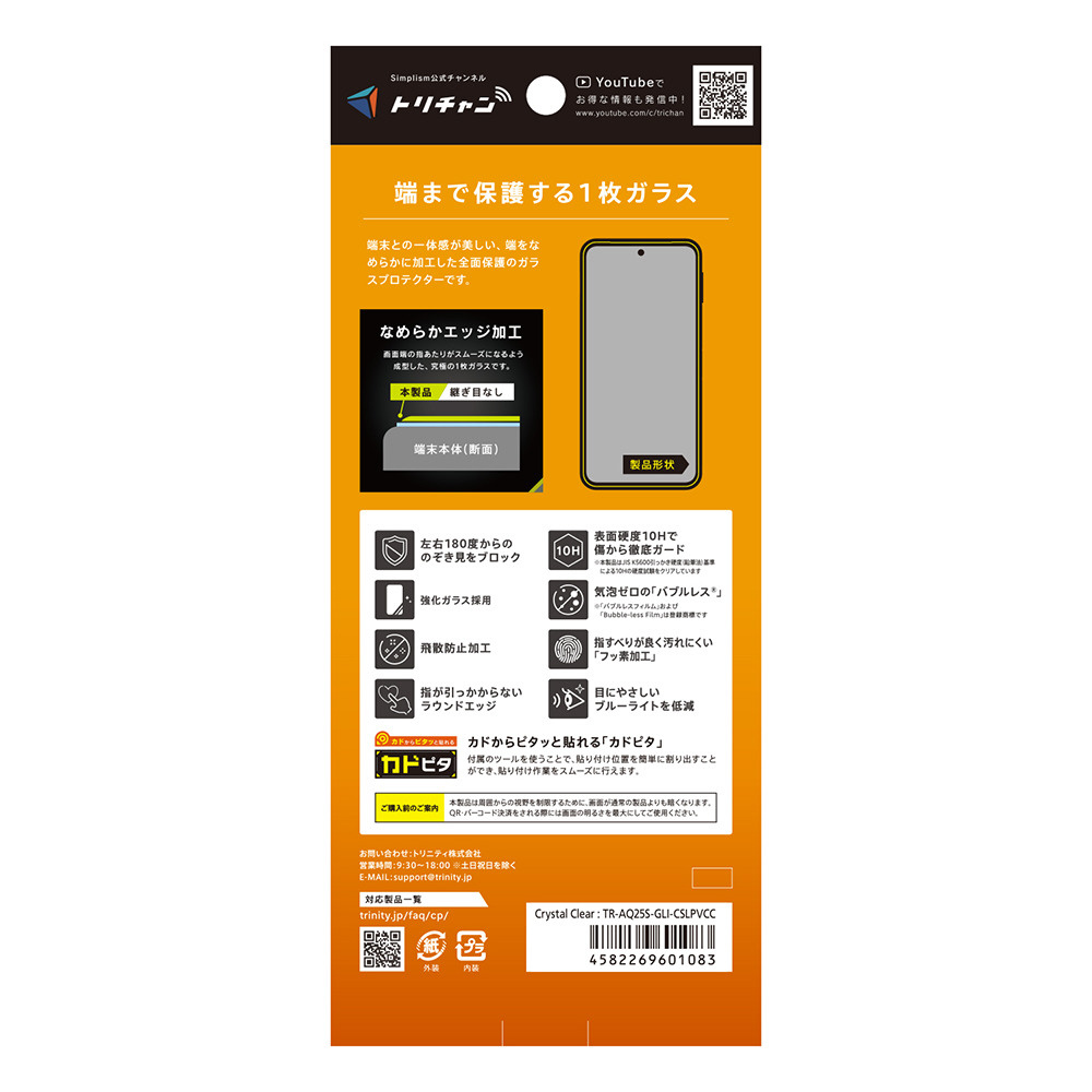 AQUOS sense10 / sense9 のぞき見防止 画面保護強化ガラス カドピタ 光沢 TR-AQ25S-GLI-CSLPVCC