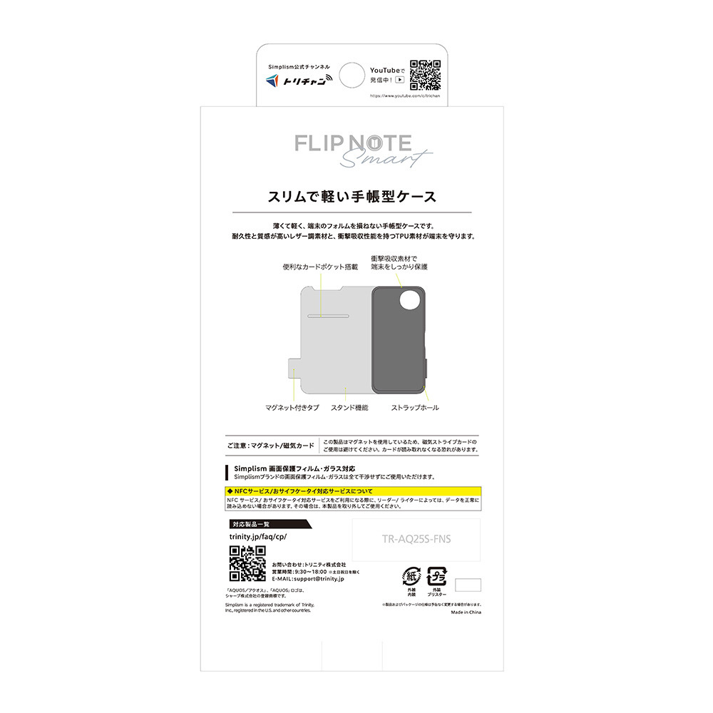 AQUOS sense10 / sense9 [Smart FlipNote] 薄型スマートフリップノートケース ブラック TR-AQ25S-FNS-LBK