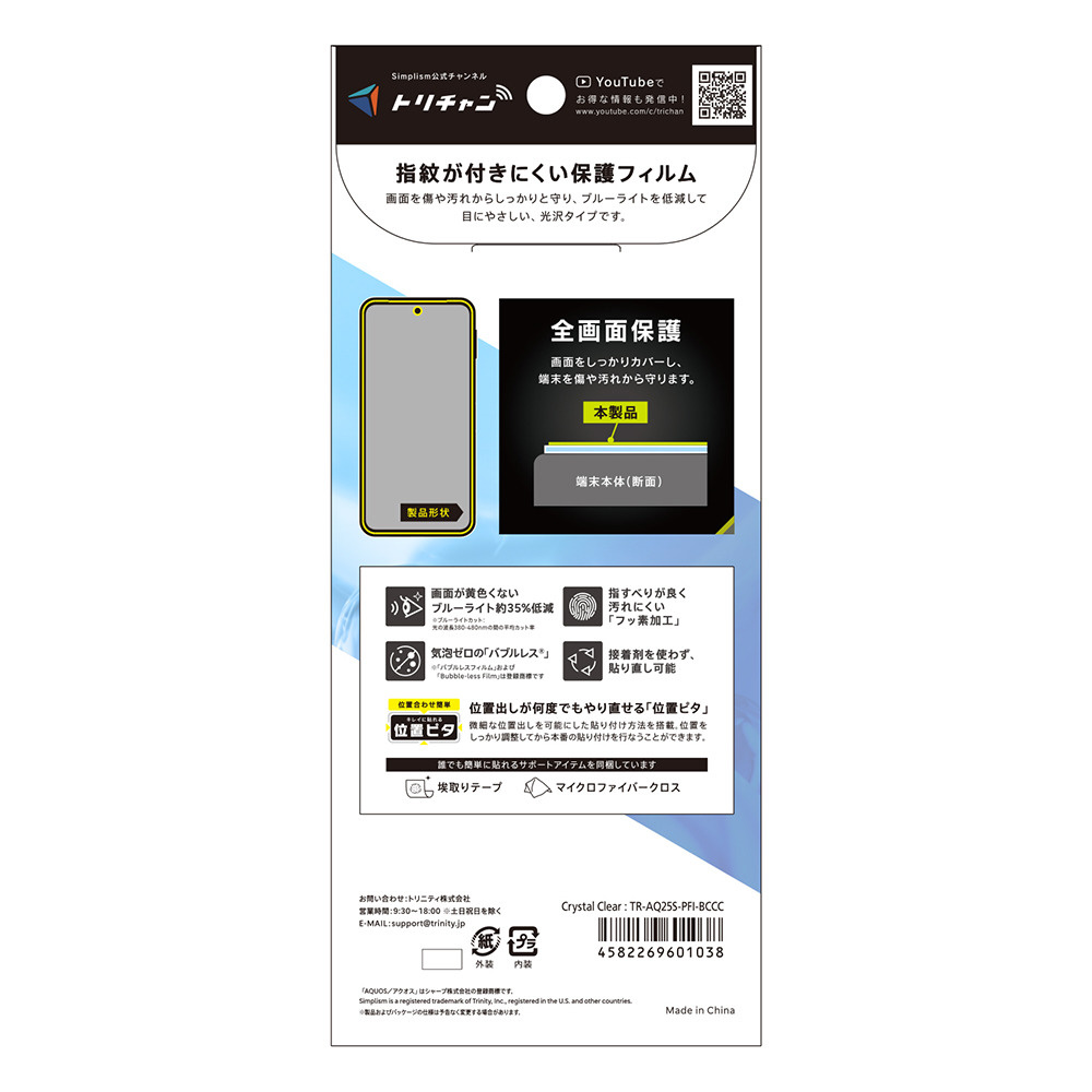 AQUOS sense10 / sense9 ブルーライト低減 画面保護フィルム 位置ピタ 光沢 TR-AQ25S-PFI-BCCC