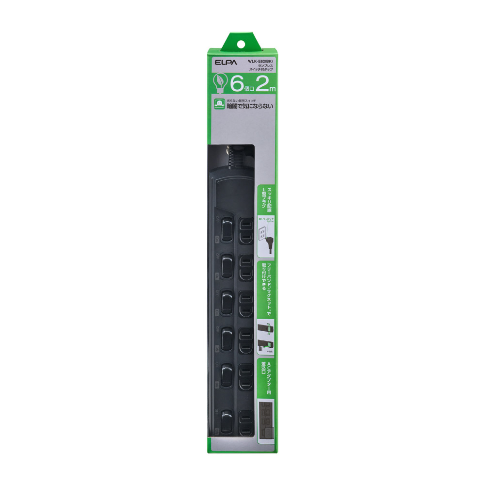 ランプレスSW付タップ6P2M WLK-E62(BK)