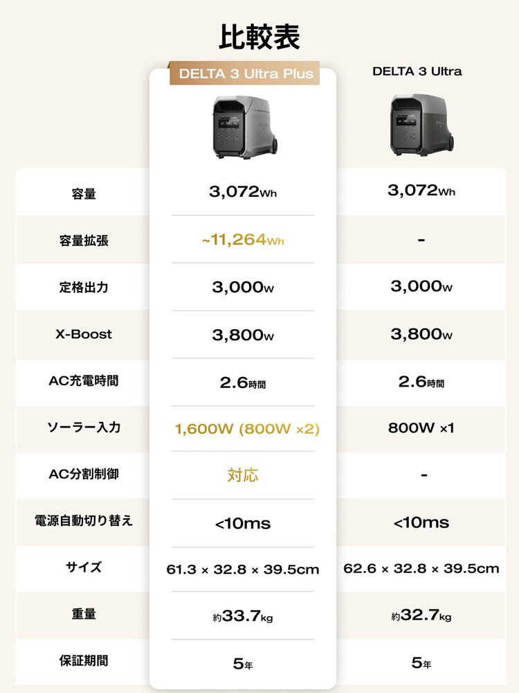 3,072Wh大容量 & 定格3,000W高出力、家庭用蓄電池レベルの高性能