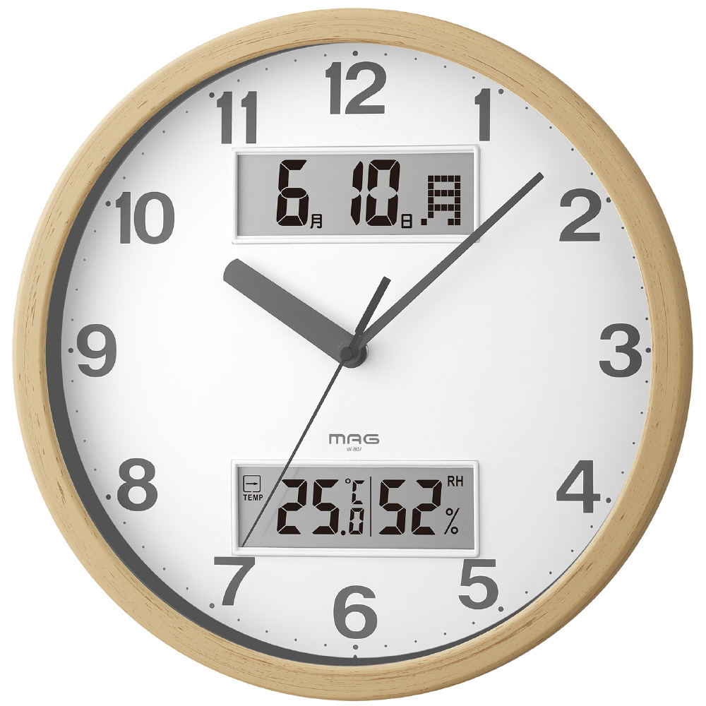 木目調の多機能時計 アナデジ掛時計 ダブルポイント ナチュラル 木目調 W-807 N-Z
