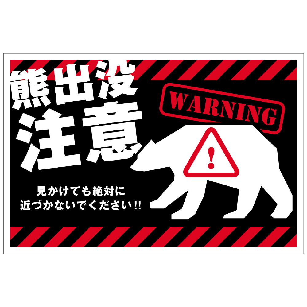 仕様1 表示内容:熊出没注意取付仕様:取付穴4スミ・ビス・両面テープ等(別売)縦(mm):450横(mm):300厚さ(mm):1