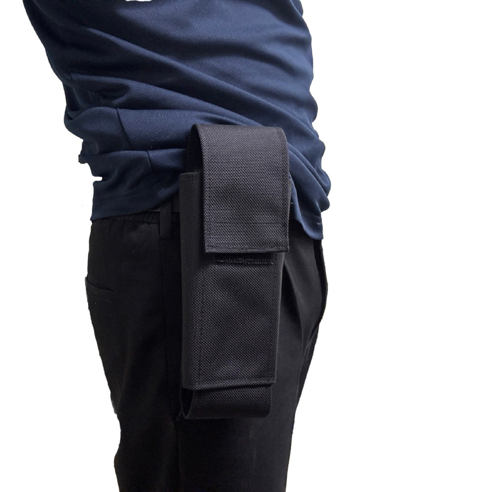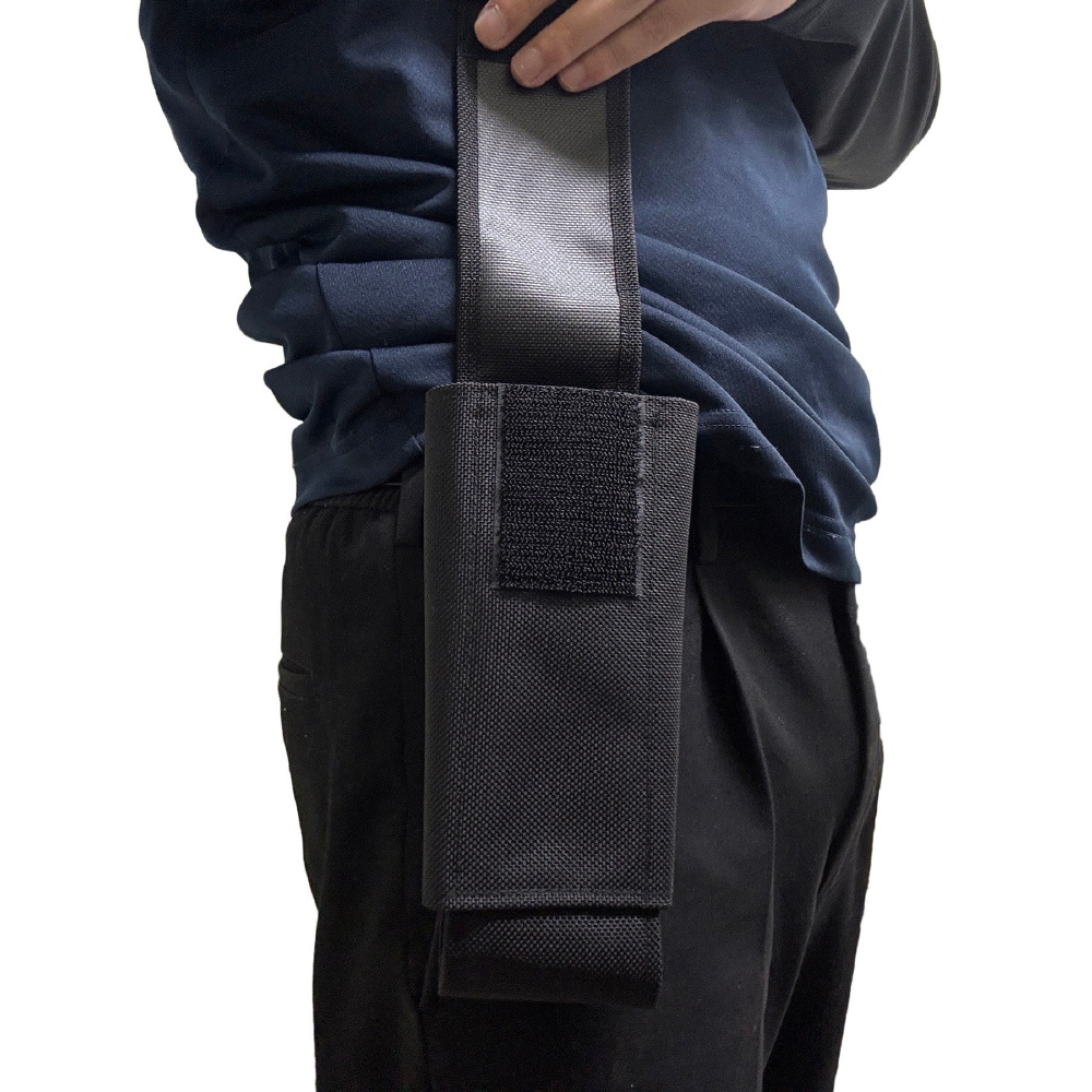 『熊スプレー専用ホルスター』は、熊撃退スプレーを安全かつ迅速に携帯・使用できるように設計された専用ケースです。スプレー缶(『熊よけスプレー CA230 カウンターアソルト』、『熊よけスプレー CA290 カウンターアソルト ストロンガー』)にぴったり合うように作られており、フィット感が抜群です。当該スプレー缶以外にも直径60mm以内の円柱容器であれば収納可能なので、例えば水筒入れなど、多用途に用いることができます。ベルトやリュックなどにしっかり固定でき、誤ってスプレーが出てしまうのを防ぎます。