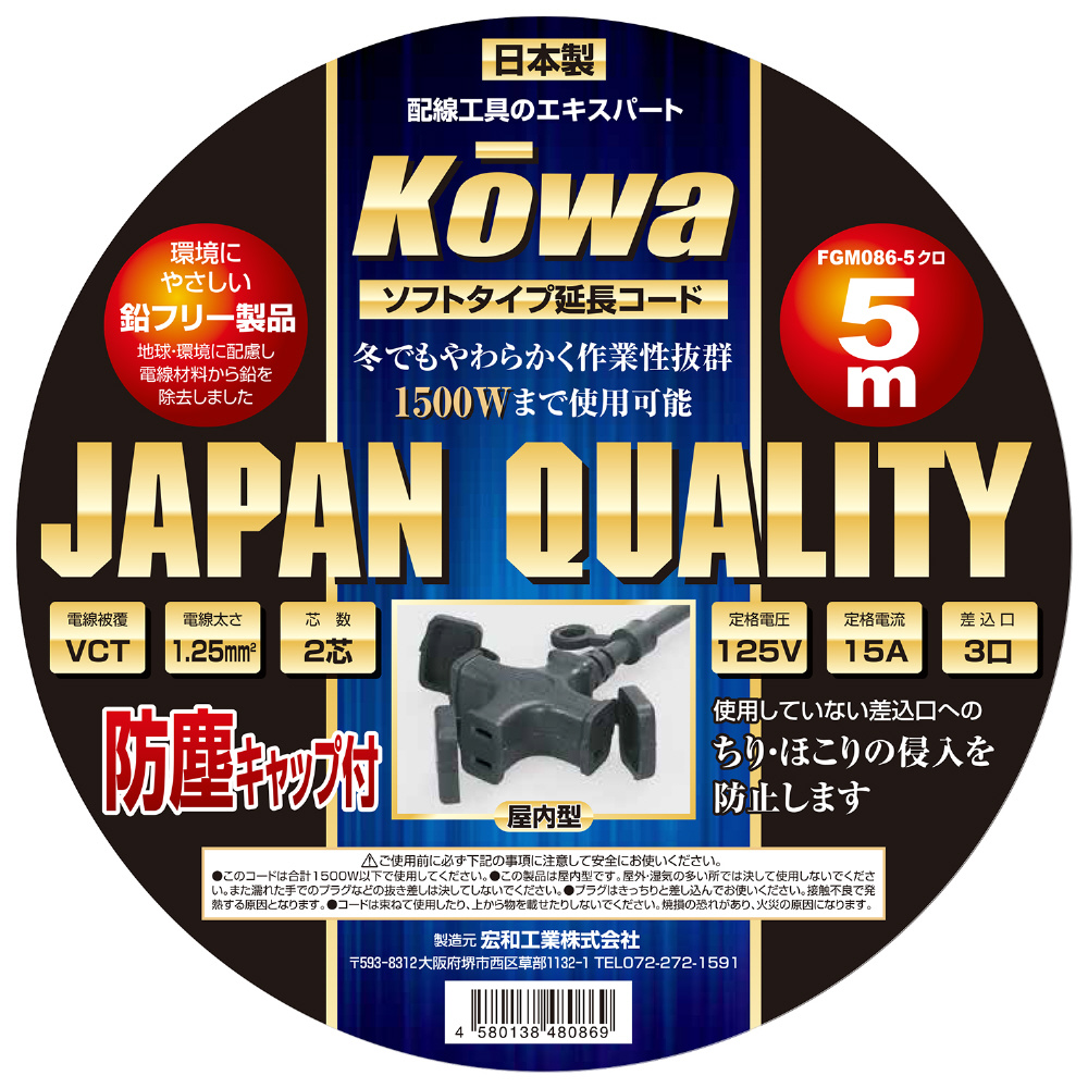 延長コード 15A×5m FGM086-5 クロ FGM086-5