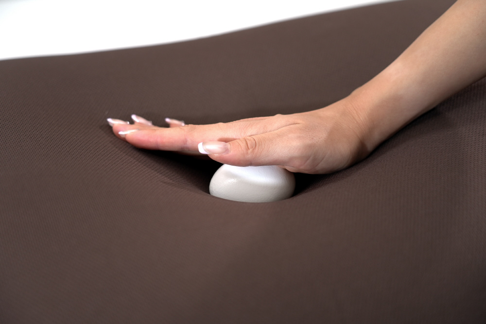 カバーは通気性、吸水性のあるニット生地を使用。洗濯OKで長く清潔にご使用いただけます。