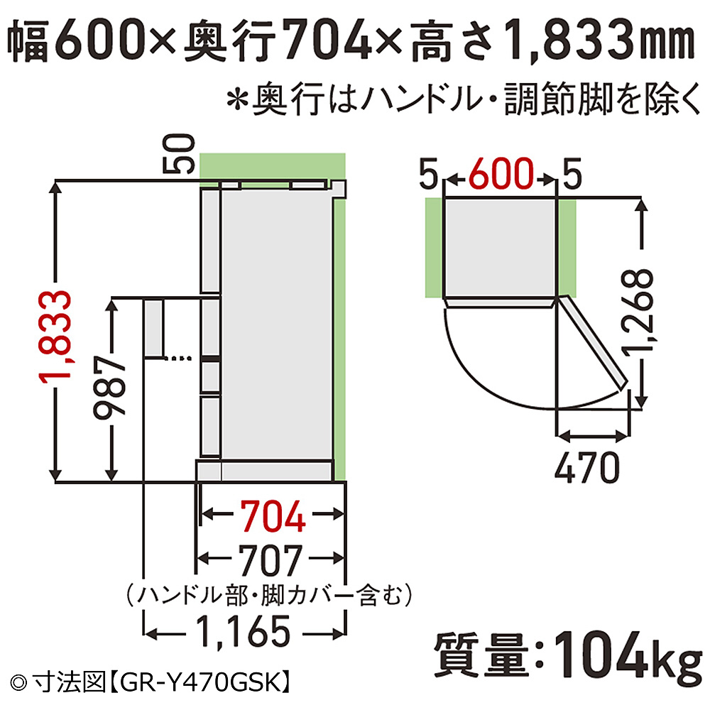 外形寸法(幅×高さ×奥行)mm(ハンドル・脚カバーを除く)