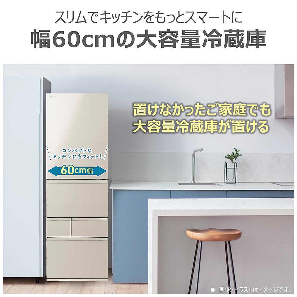 冷蔵庫 VEGETA(ベジータ)GSKシリーズ サテンゴールド GR-Y470GSKL-EC [幅60cm /465L /5ドア /左開きタイプ /2025年]