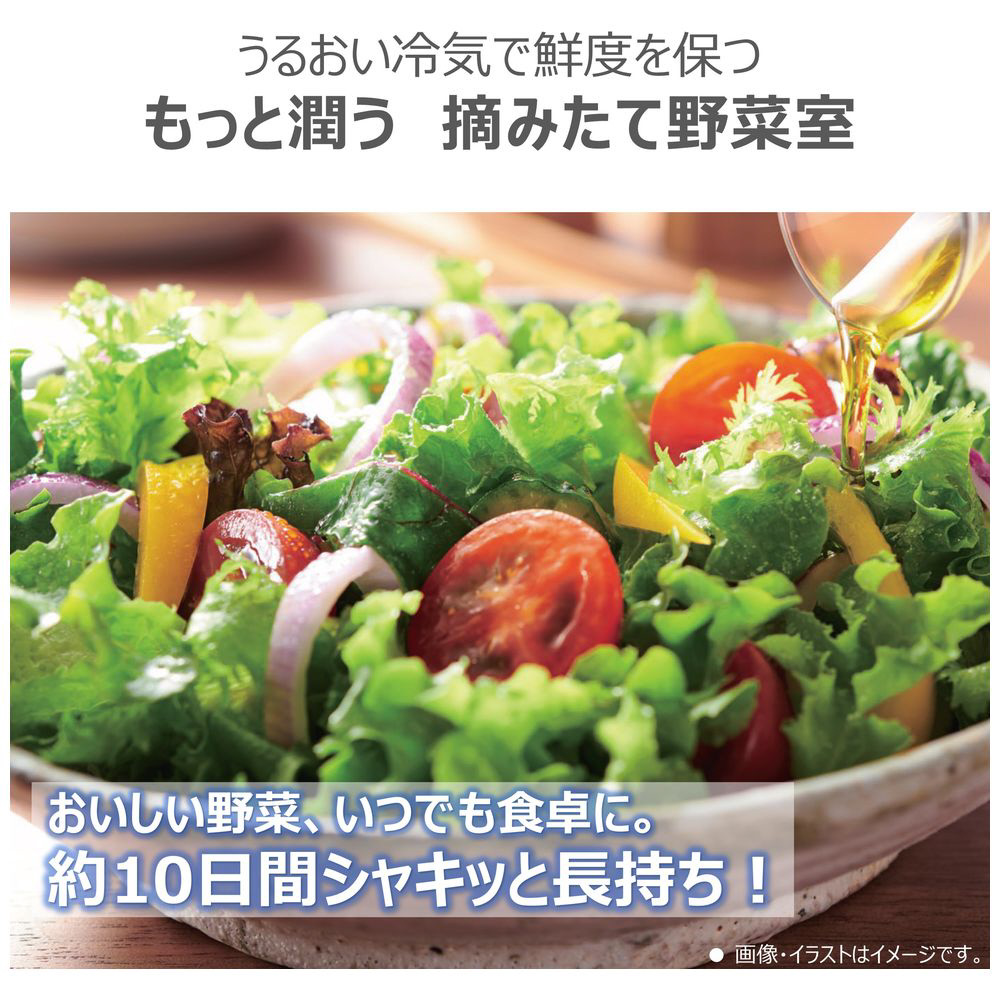 新鮮ツイン冷却システムにより湿度と温度を細かくコントロールする事で、より野菜に快適な環境を作りだして鮮度を約10日間キープ。さらに、野菜を入れておくだけで栄養素もアップ!収穫したてのようなみずみずしさとおいしさ・栄養をしっかり守り、まとめ買いにも安心。無駄なく野菜を使いきれます。