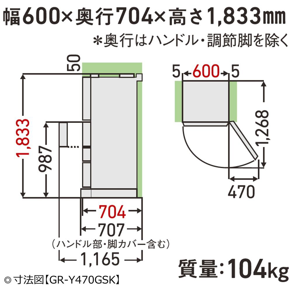 冷蔵庫 VEGETA(ベジータ)GSKシリーズ サテンゴールド GR-Y470GSK-EC [幅60cm /465L /5ドア /右開きタイプ /2025年]