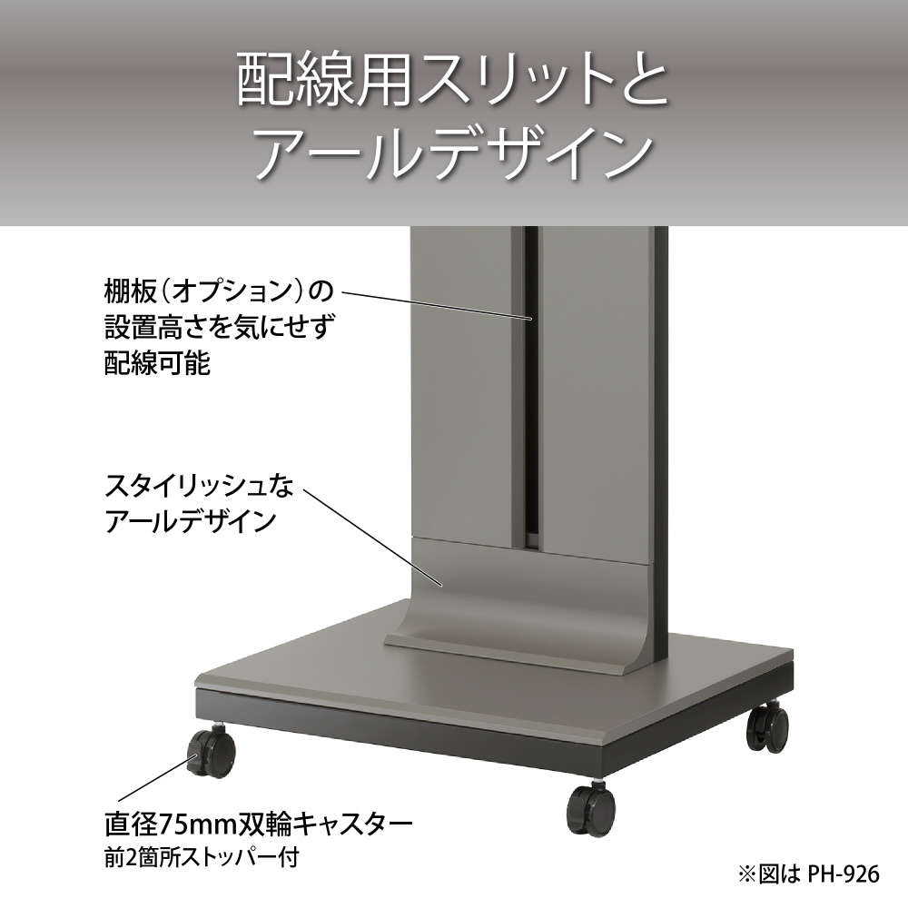 配線収納など機能性だけでなくスタイリッシュなデザイン性も備えたディスプレイスタンド