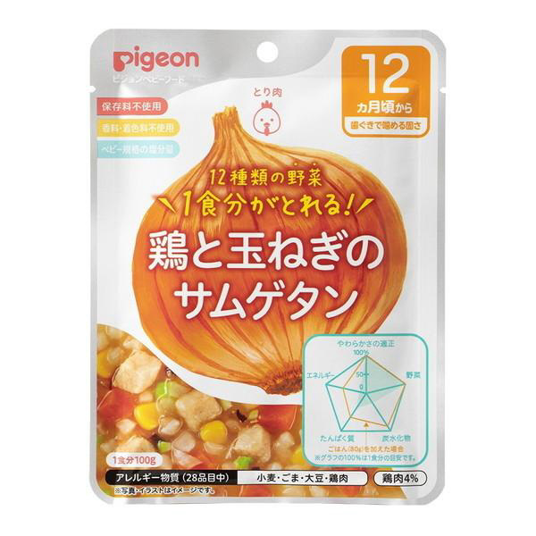 12ヵ月頃からの赤ちゃんのかむ力の発達に合わせて、具材の大きさや固さを考えて調理しました。素材の味を活かしたうす味仕立て。12種類の野菜配合で、1食分に必要な野菜40gが摂れます。