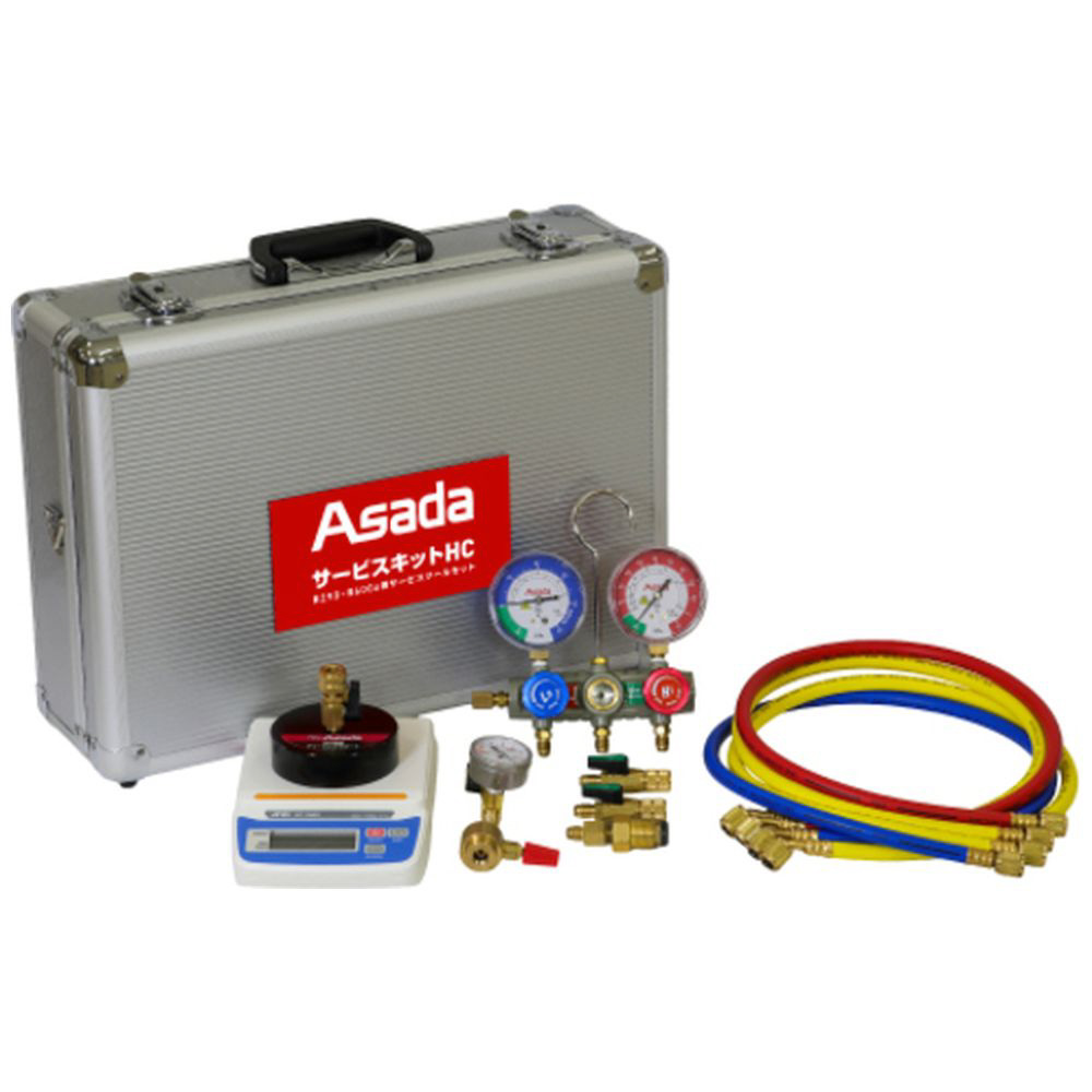 1/4ホールバルブ(オス×メス)×2個、1/4ボンベアダプタHC、1/4チャージングホース92cm:黄(2本)・赤・青、コンパクトデジタルスケール、キャリングケース