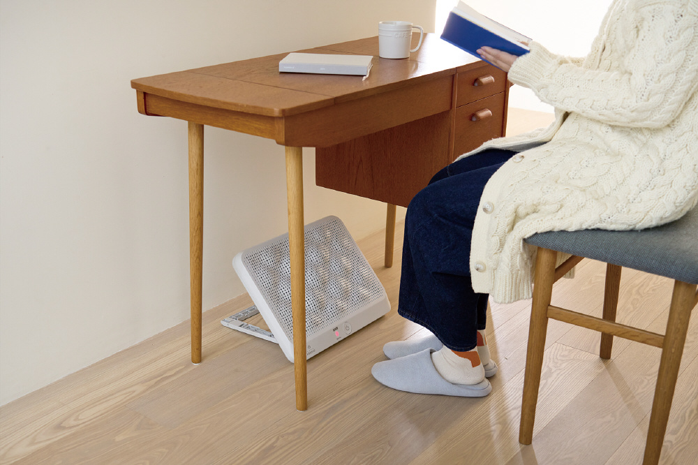 持ち運びやすい軽さと薄さで、いつでもどこでも足湯気分。