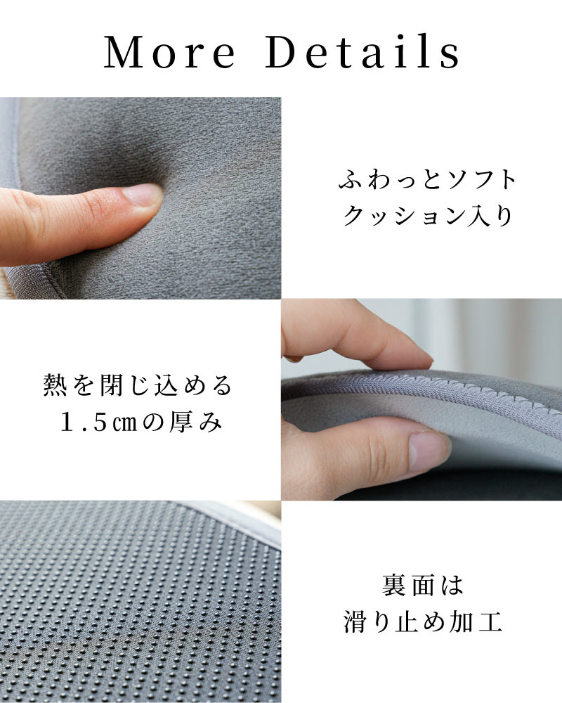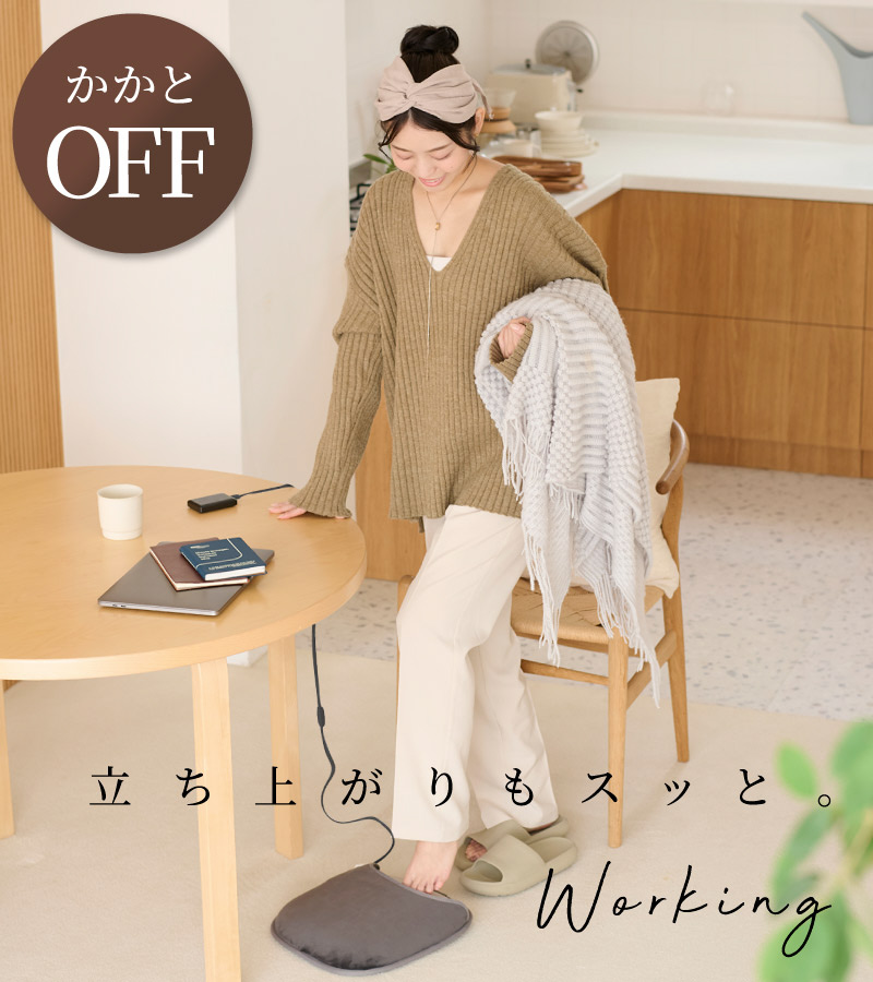 底面から集中して発熱するので、足裏から直接温もりが巡り、こたつのような温かさ。