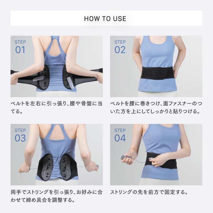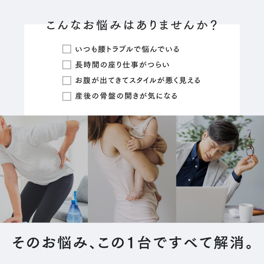腰・お腹・骨盤まわりに使える3WAY設計で、あらゆるお悩みにアプローチ。
