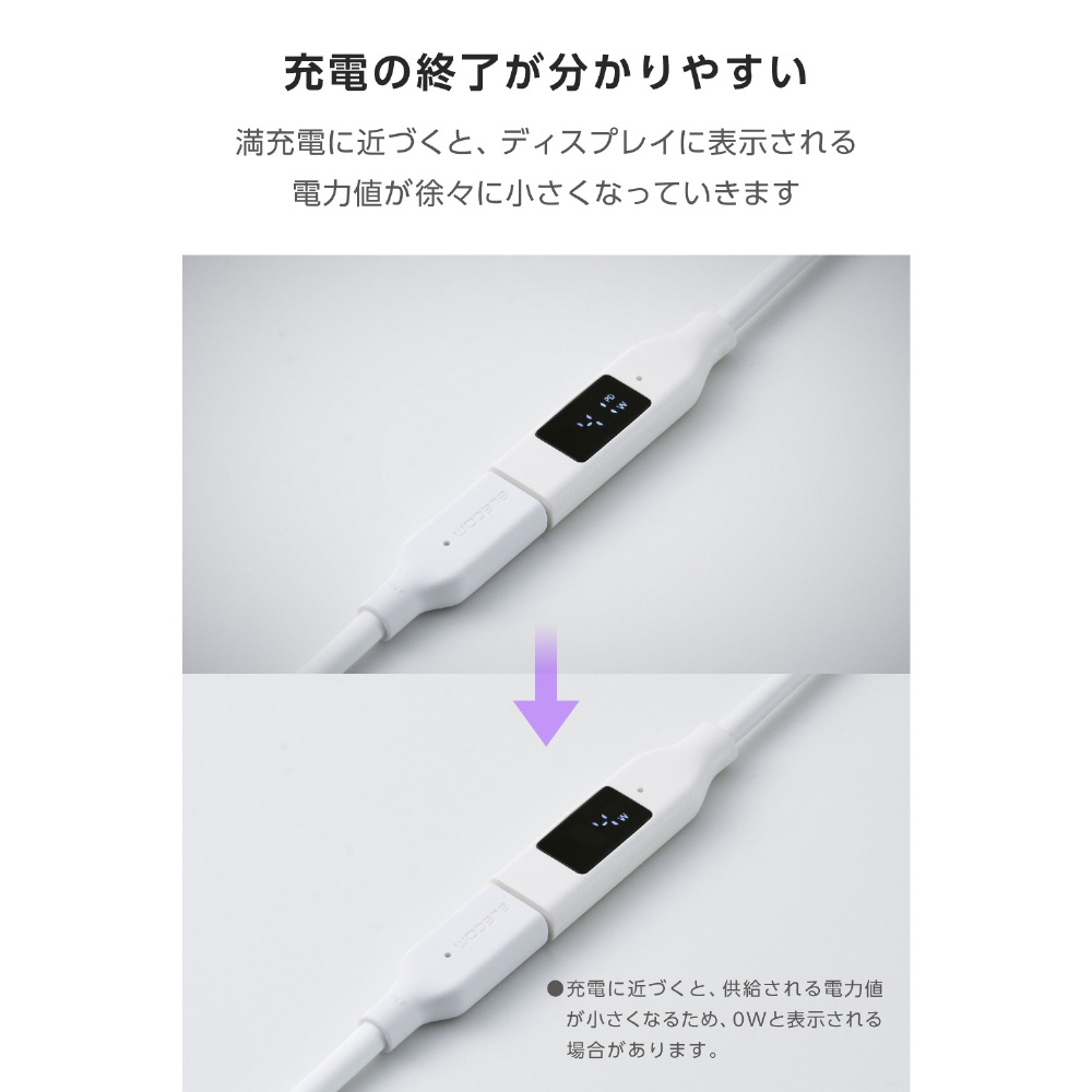 電力表示ディスプレイ搭載 USB Type-C 延長ケーブル 1m PD240W対応 USB-Cプラグ - USB-Cポート 480Mbpsデータ転送 ホワイト MPA-CCWE10WH