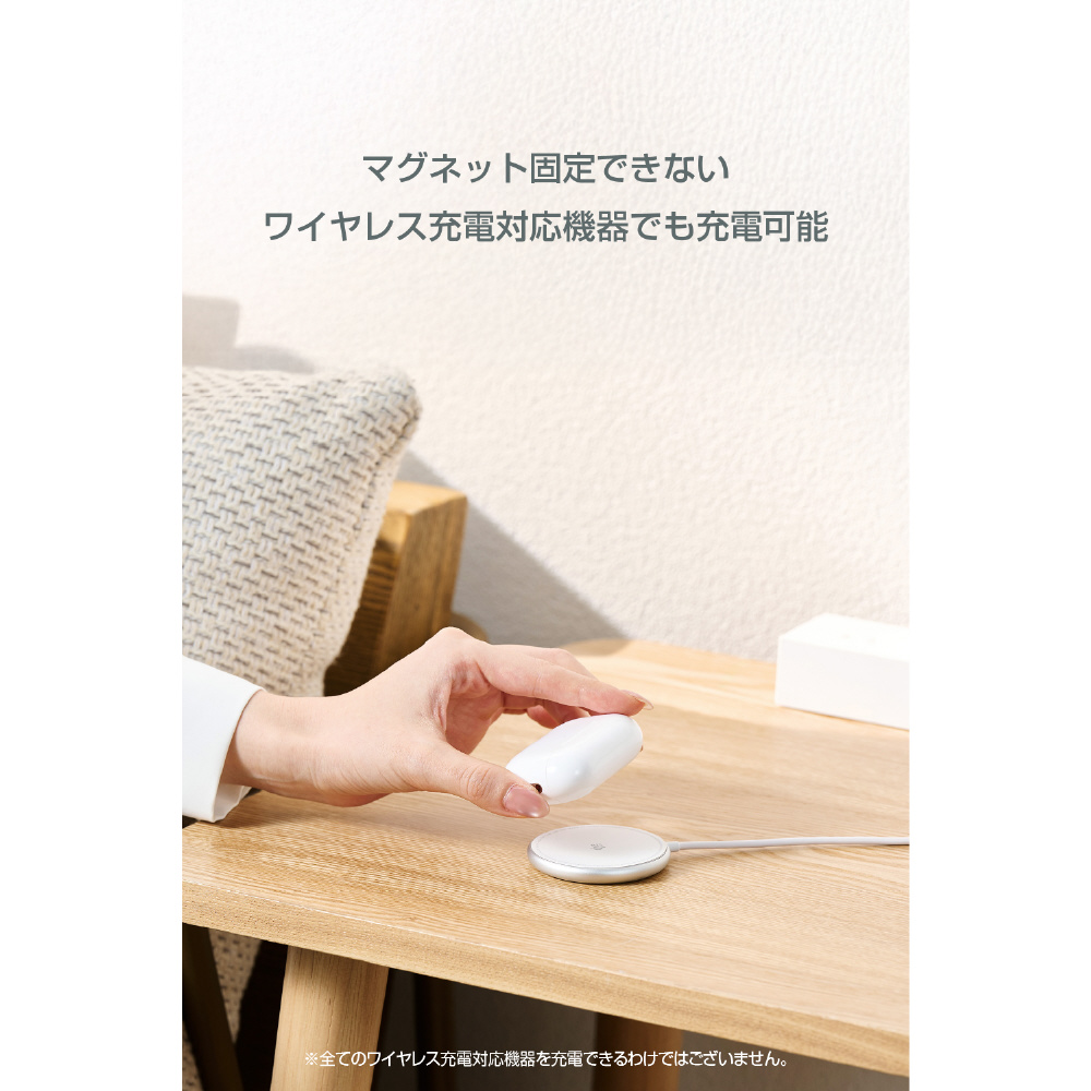 ※ワイヤレス充電対応ケースのみ。また、マグネットでの固定は対応するケースのみ。左記に該当しても、その仕様や条件によっては充電できない場合があります。