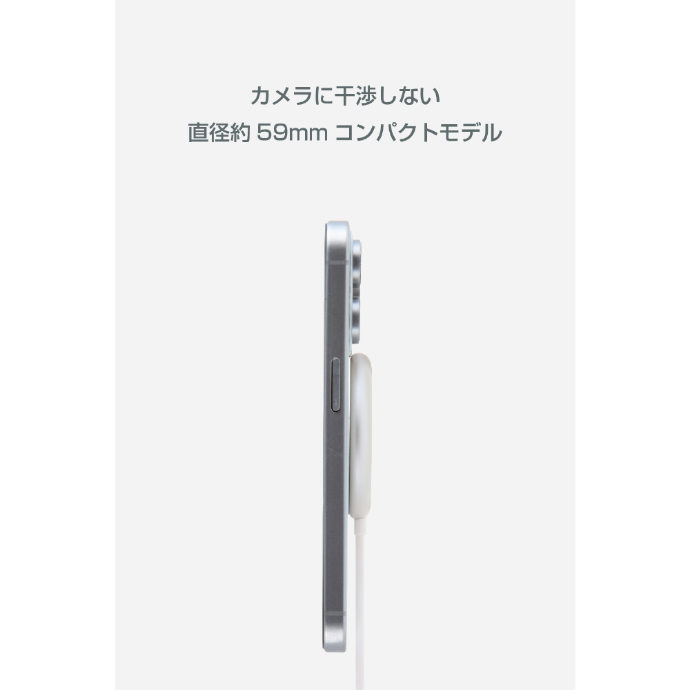 iPhoneの背面カメラと干渉しない、直径約59mmのコンパクトサイズです。