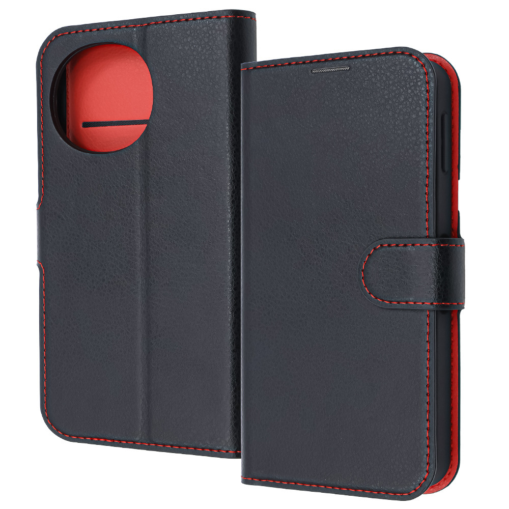 AQUOS sense9後継/sense9 / 耐衝撃 マグネットベルト シンプル 手帳型レザーケース / ブラック/レッド