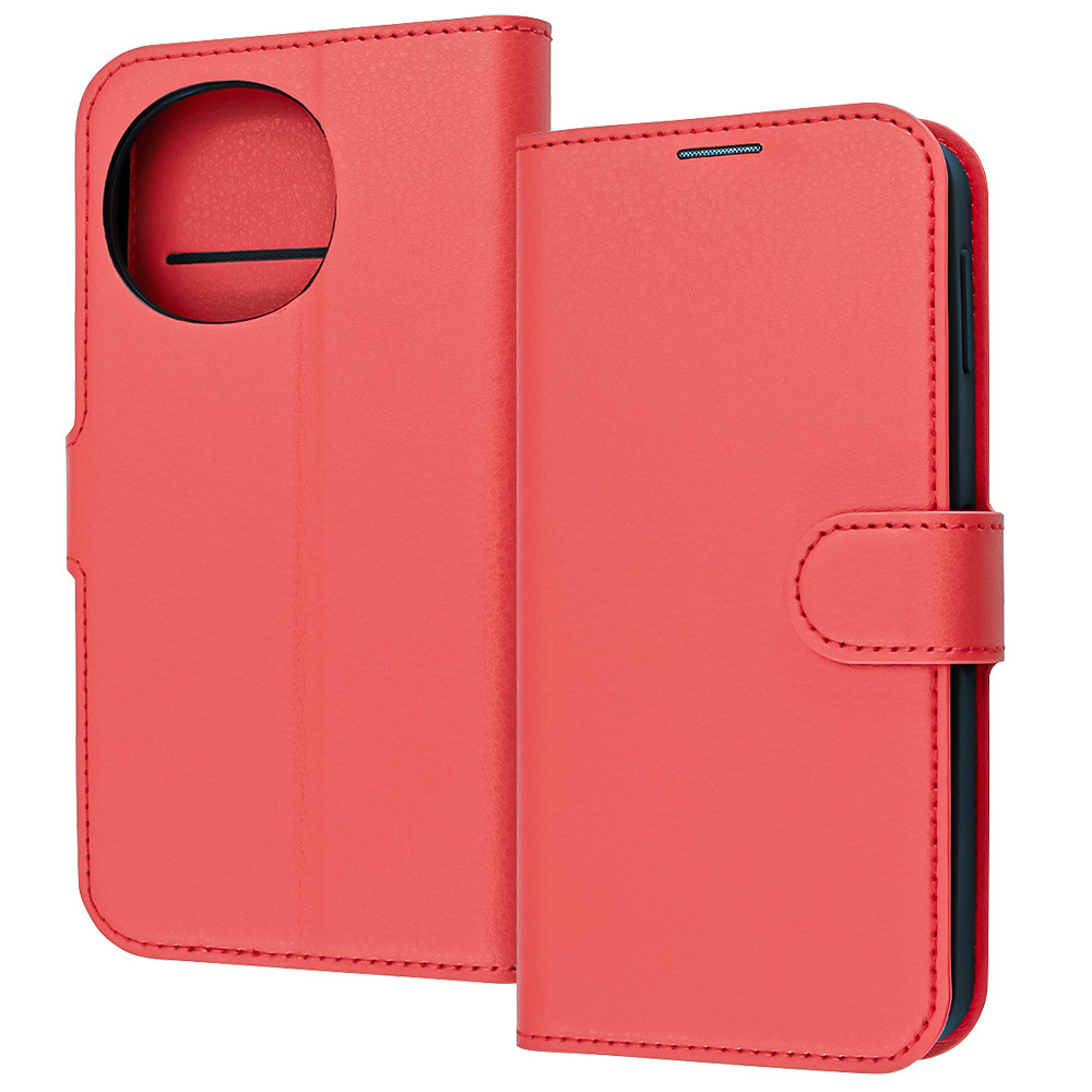 AQUOS sense9後継/sense9 / 耐衝撃 マグネットベルト シンプル 手帳型レザーケース / レッド
